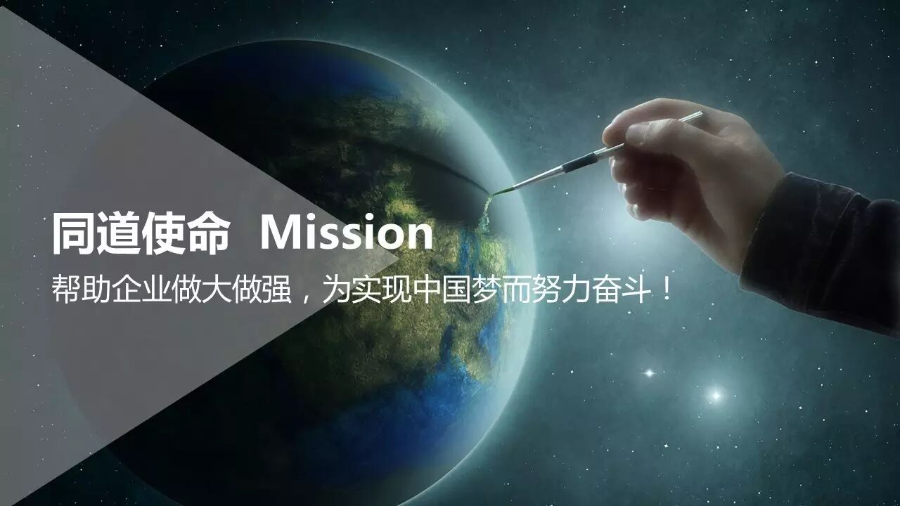 同道中人使命:帮助企业做大做强,为实现中国梦国而努力奋斗!